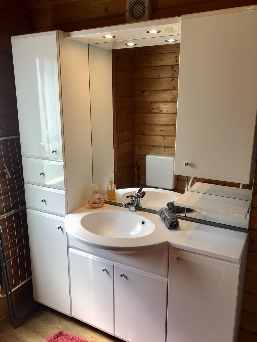 - Badezimmer: Modernes Bad mit Dusche und WC.